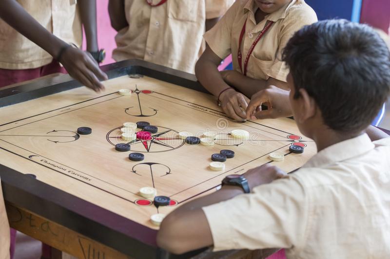 Carrom is a popular game played on a board of black and red circles. This simple game is practised with a wooden spoon, as the aim of the game is to knock the spoon off the board as many times as possible without knocking it too close to one’s position.