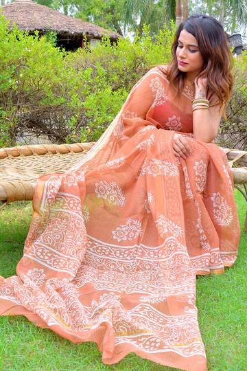 Kota Doria sarees: One of the most exquisite Indian sarees woven in pure lightweight cotton. These Rajasthani sarees are preferred for their special material which is both lovely as well as transparent. Mostly suitable for summer seasons, these kota doria silk sarees online are eye-catching and classy.